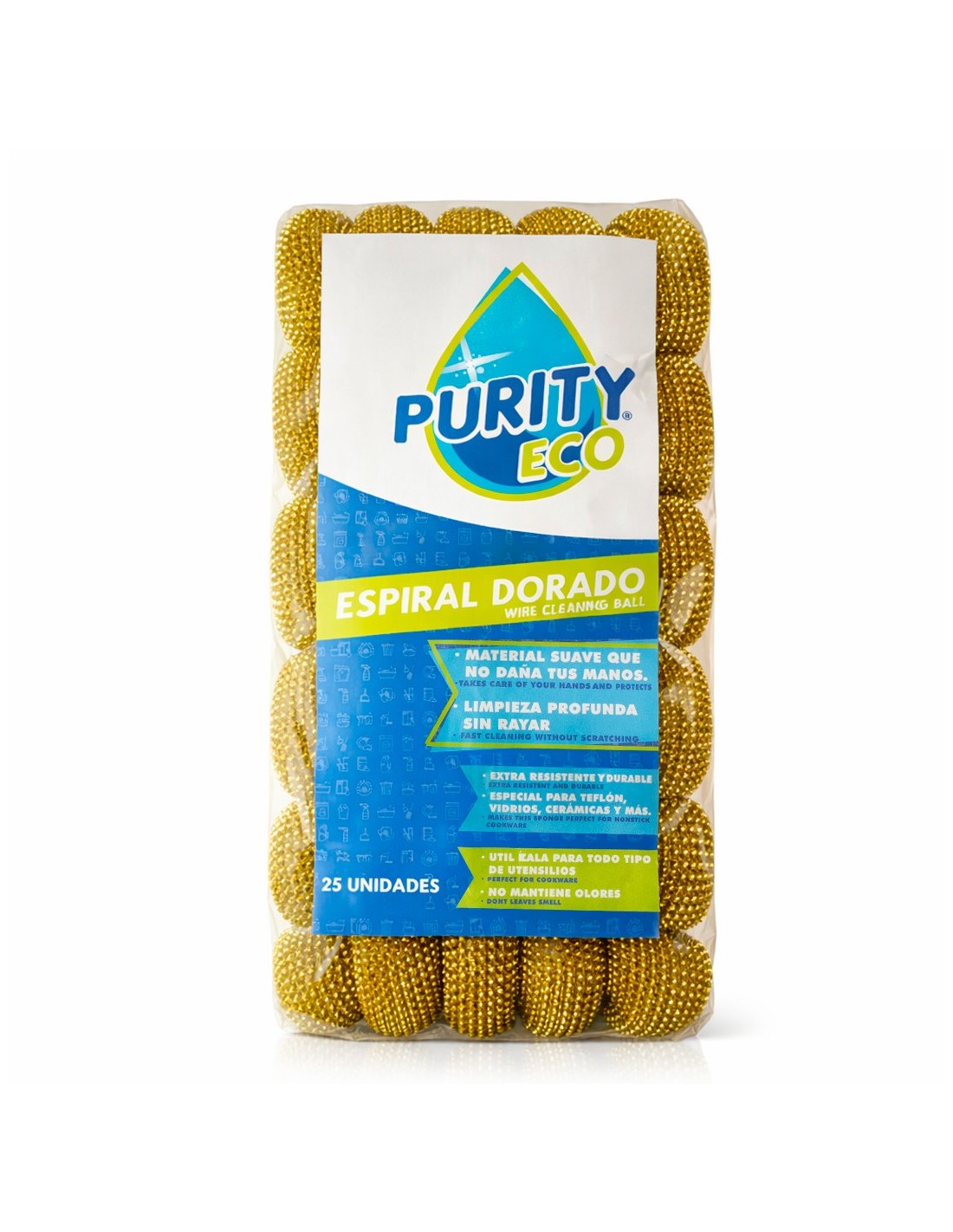Con el espiral de Purity Eco, tus manos no se dañaran más a la hora de lavar la losa, gracias a su material suave, y podrás remover la suciedad más fácilmente sin dejar rayas en tus ollas, utensilios ni vidrios.
