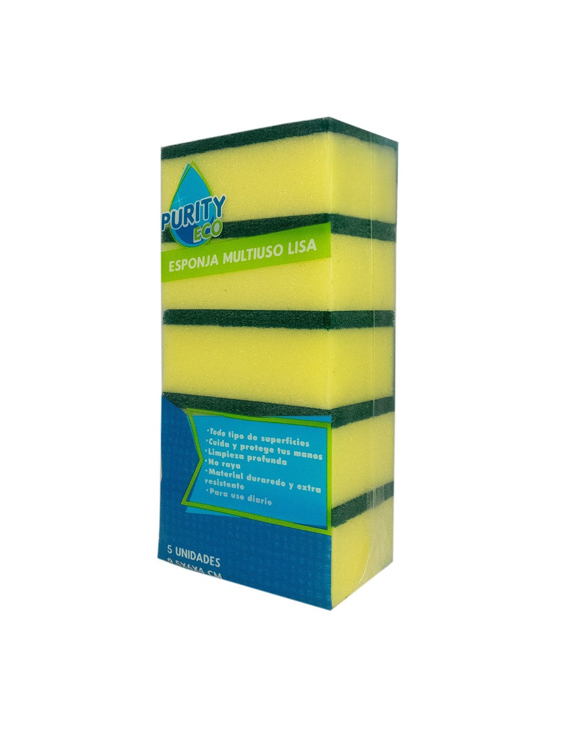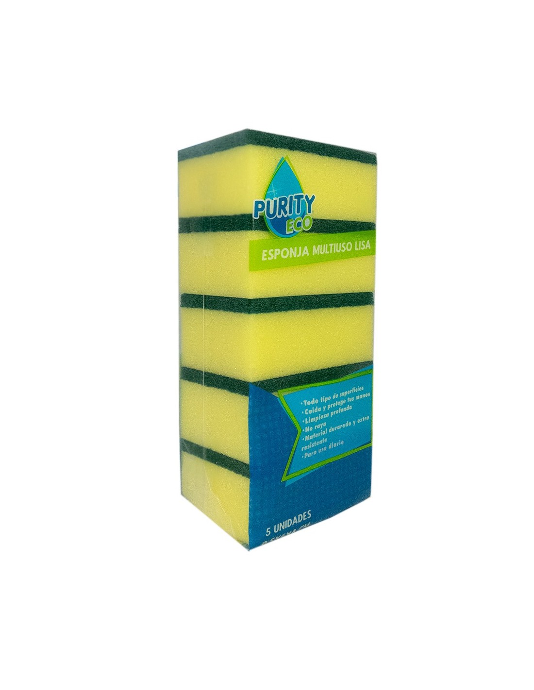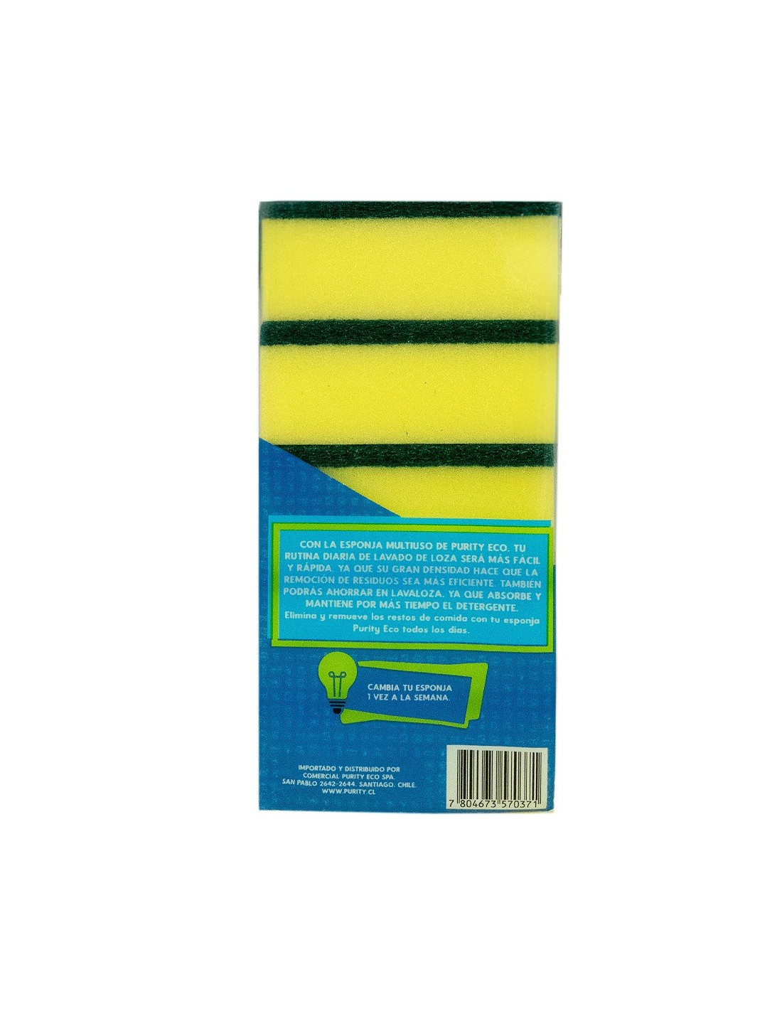Con la esponja multiuso de Purity Eco, tu rutina diaria de lavado de loza será más fácil y rápida, ya que su gran densidad hace que la remoción de residuos sea más eficiente. También podrás ahorrar en lavaloza, ya que absorbe y mantiene por más tiempo el detergente. Elimina y remueve los restos de comida con tu esponja Purity Eco todos los días.